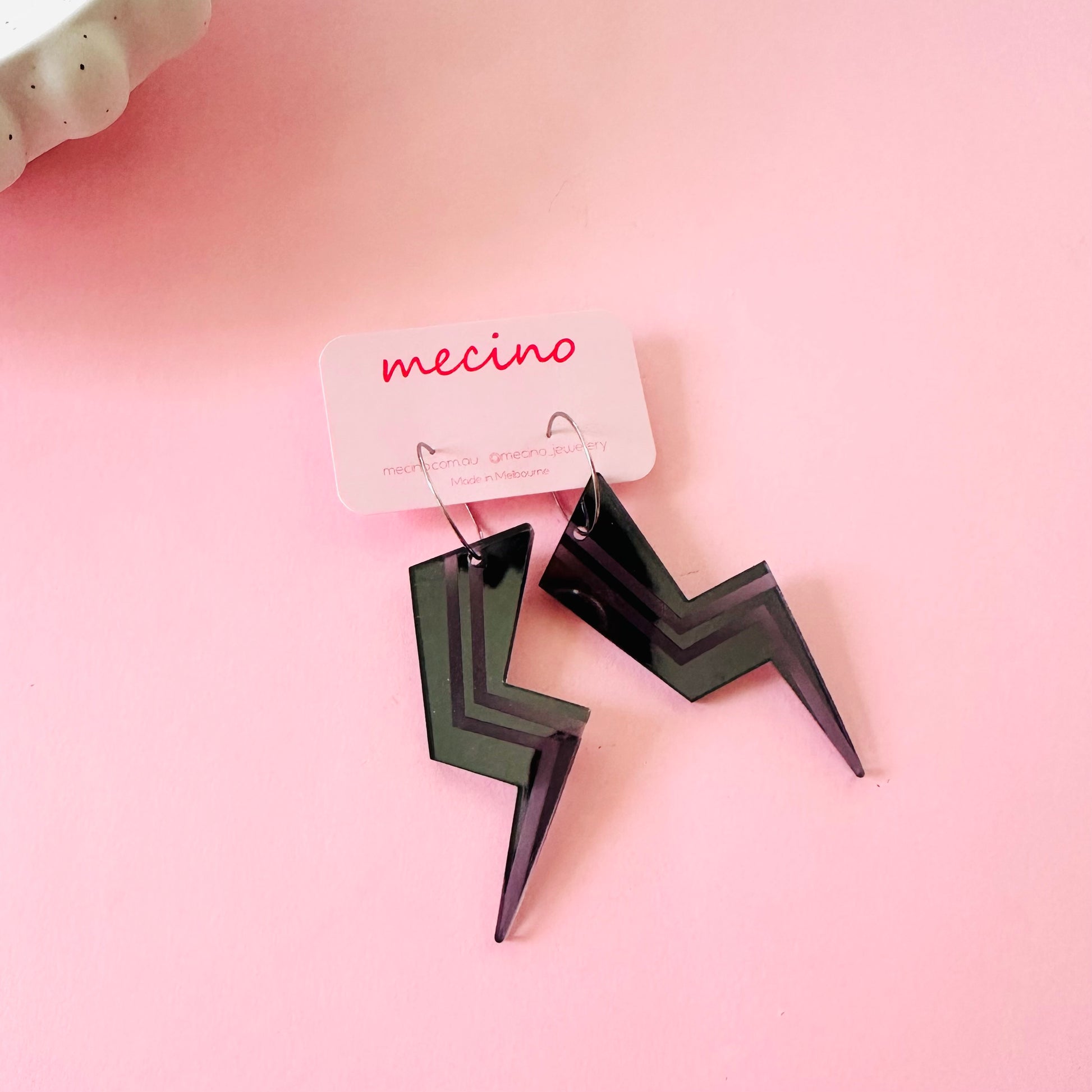These ink grey lightning bolt earrings bring all the power and personality you need to level up any outfit.