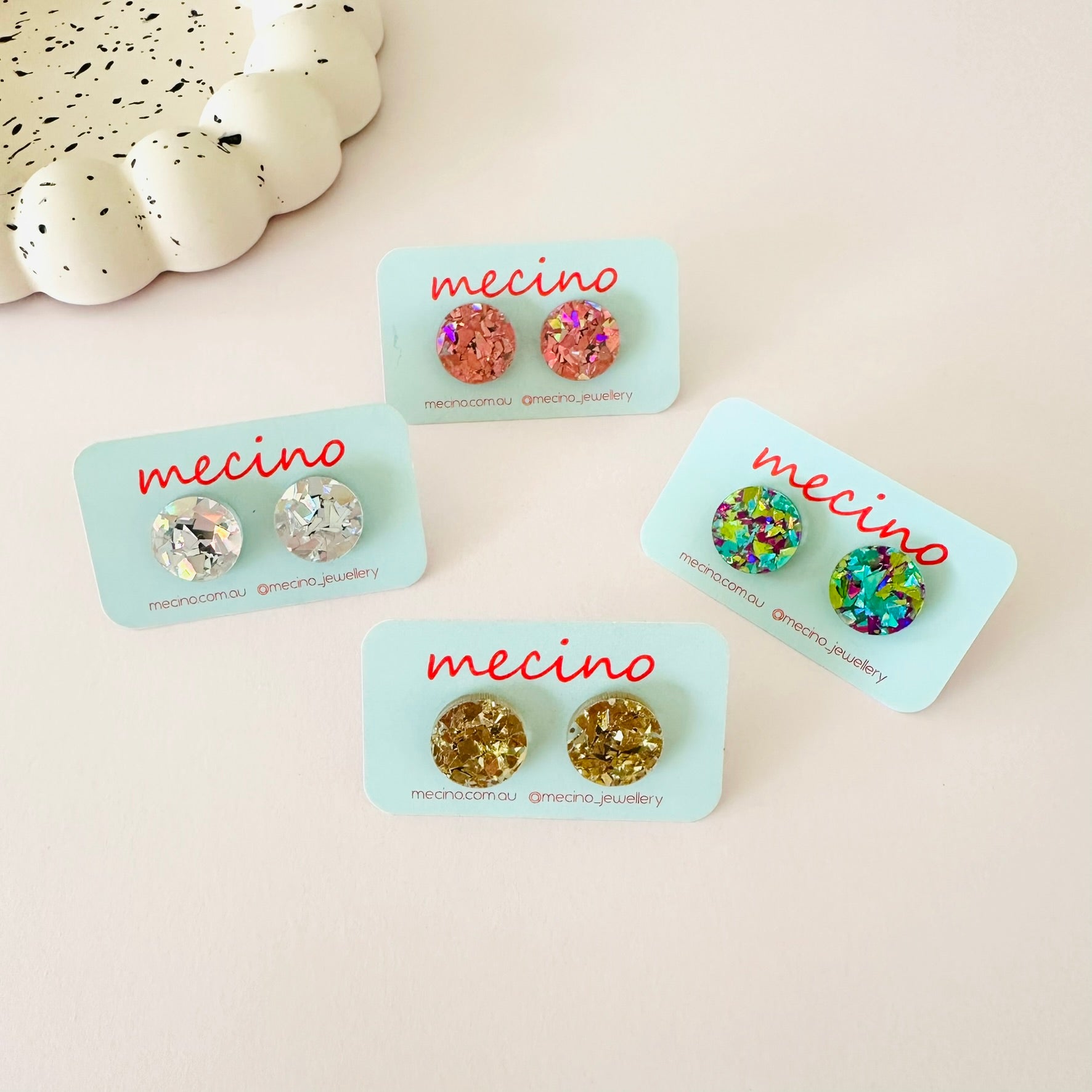 Gorgeous circle shaped studs in a range of chunky glitter mixes.
