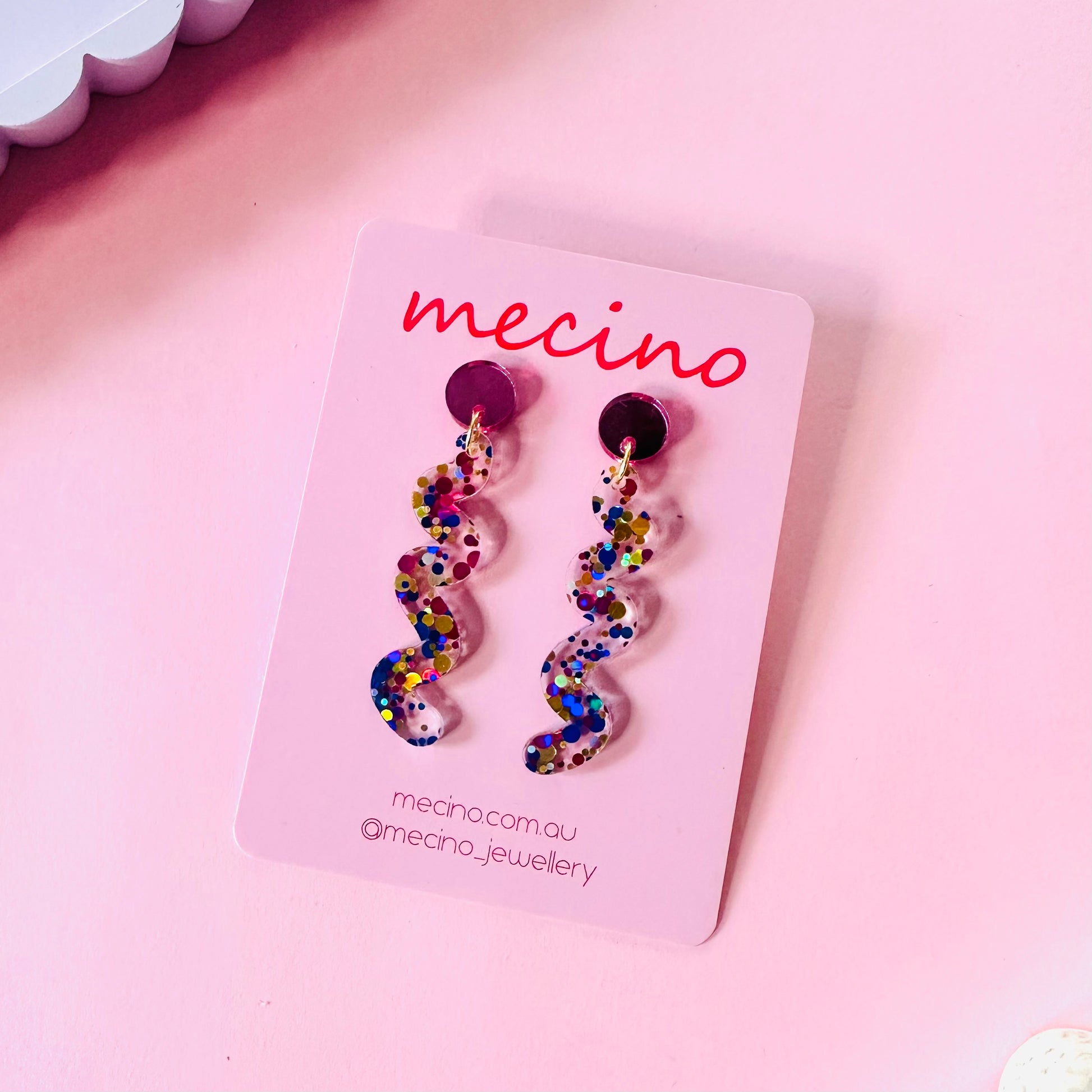 Add a splash of sparkle and whimsy to your day with these confetti swirl earrings!