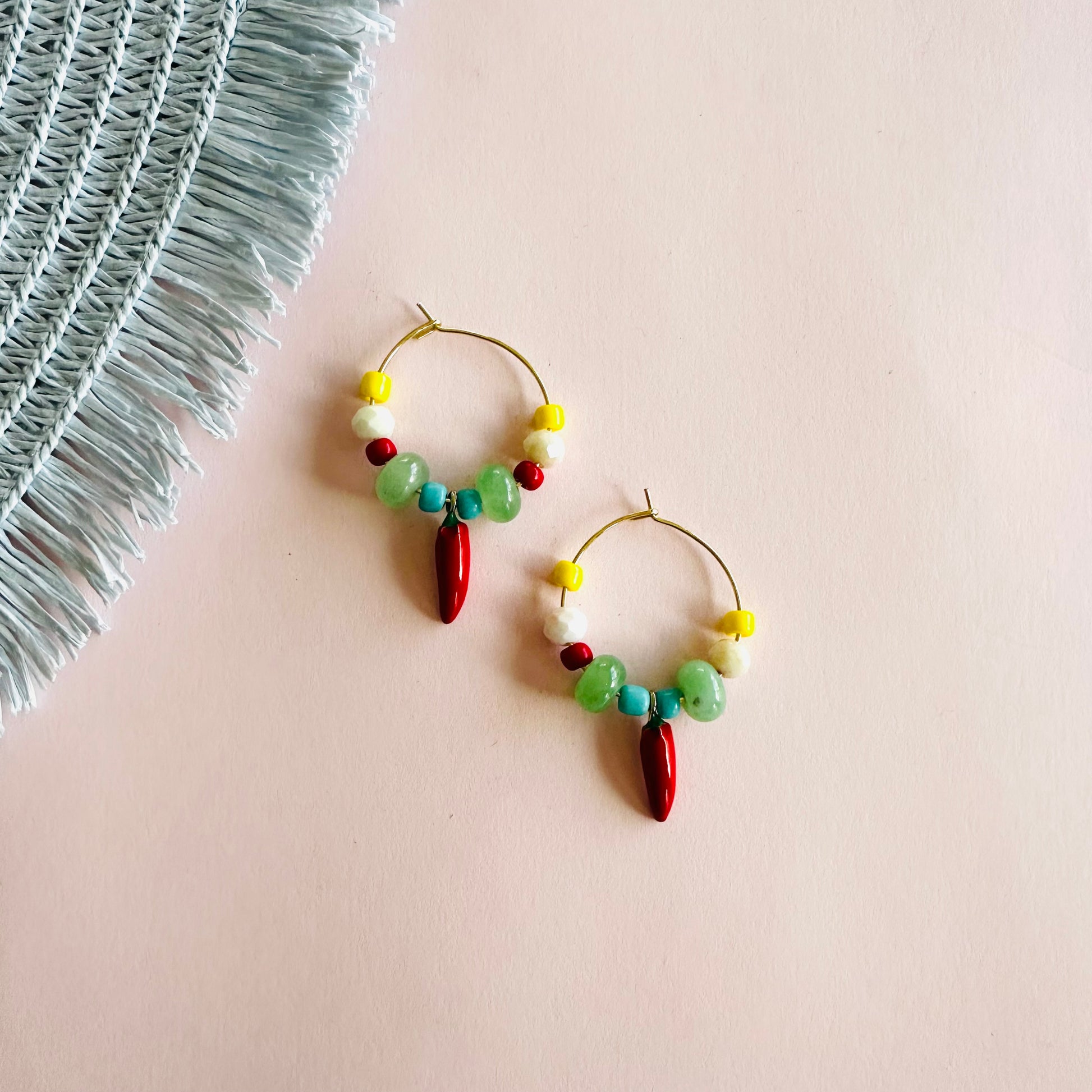Bright little hoops with colourful beads and red chilli charms. Fun and made to stand out 🌶️✨