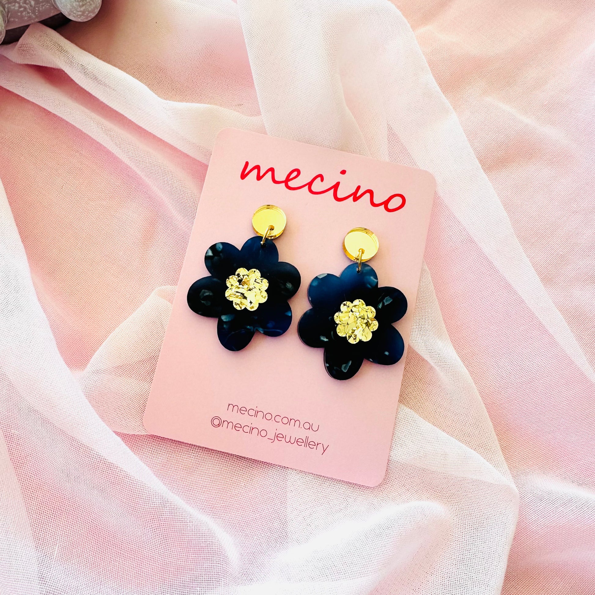 Midnight Bloom flower earrings.