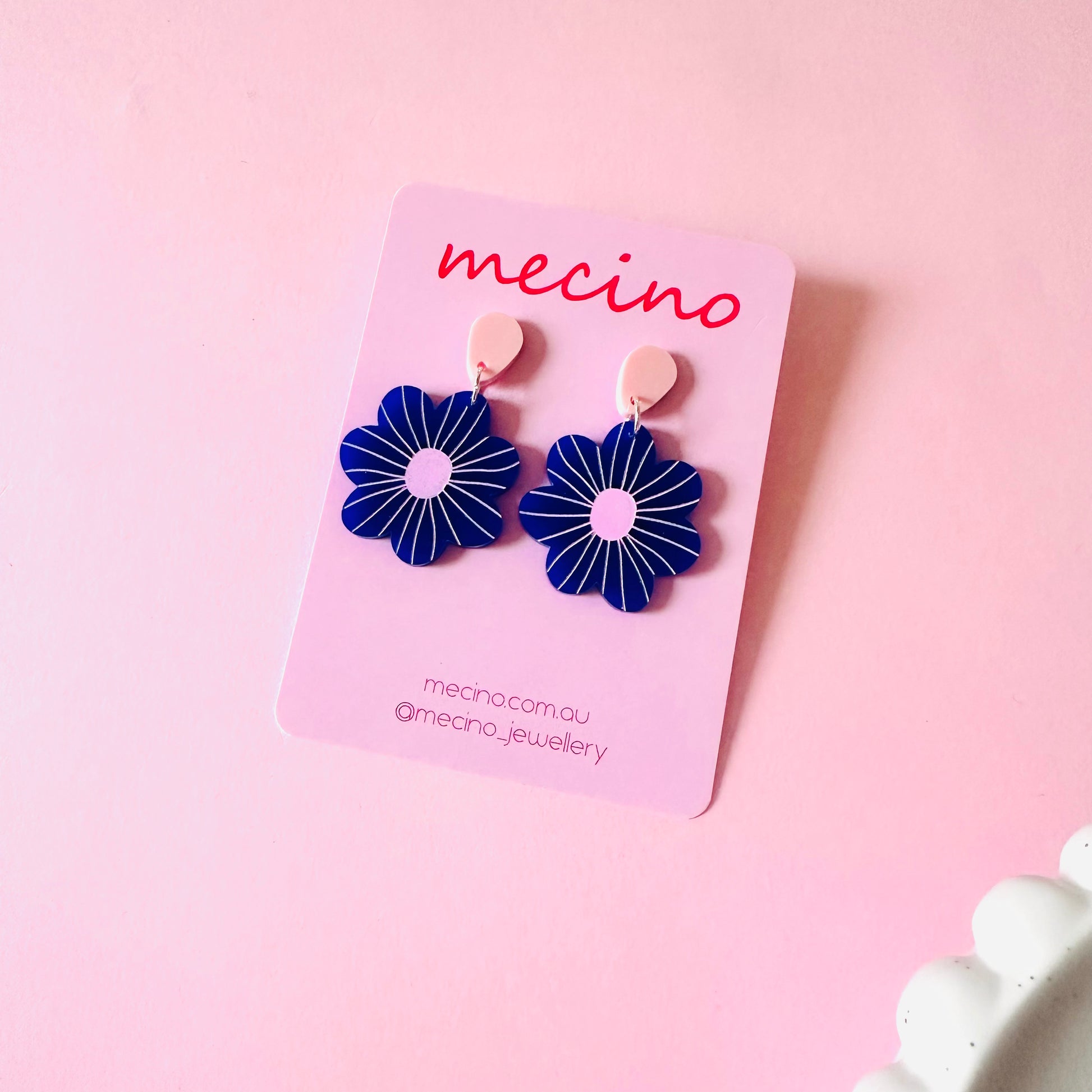 Add a pop of fun to your outfit with these bold navy daisy earrings!