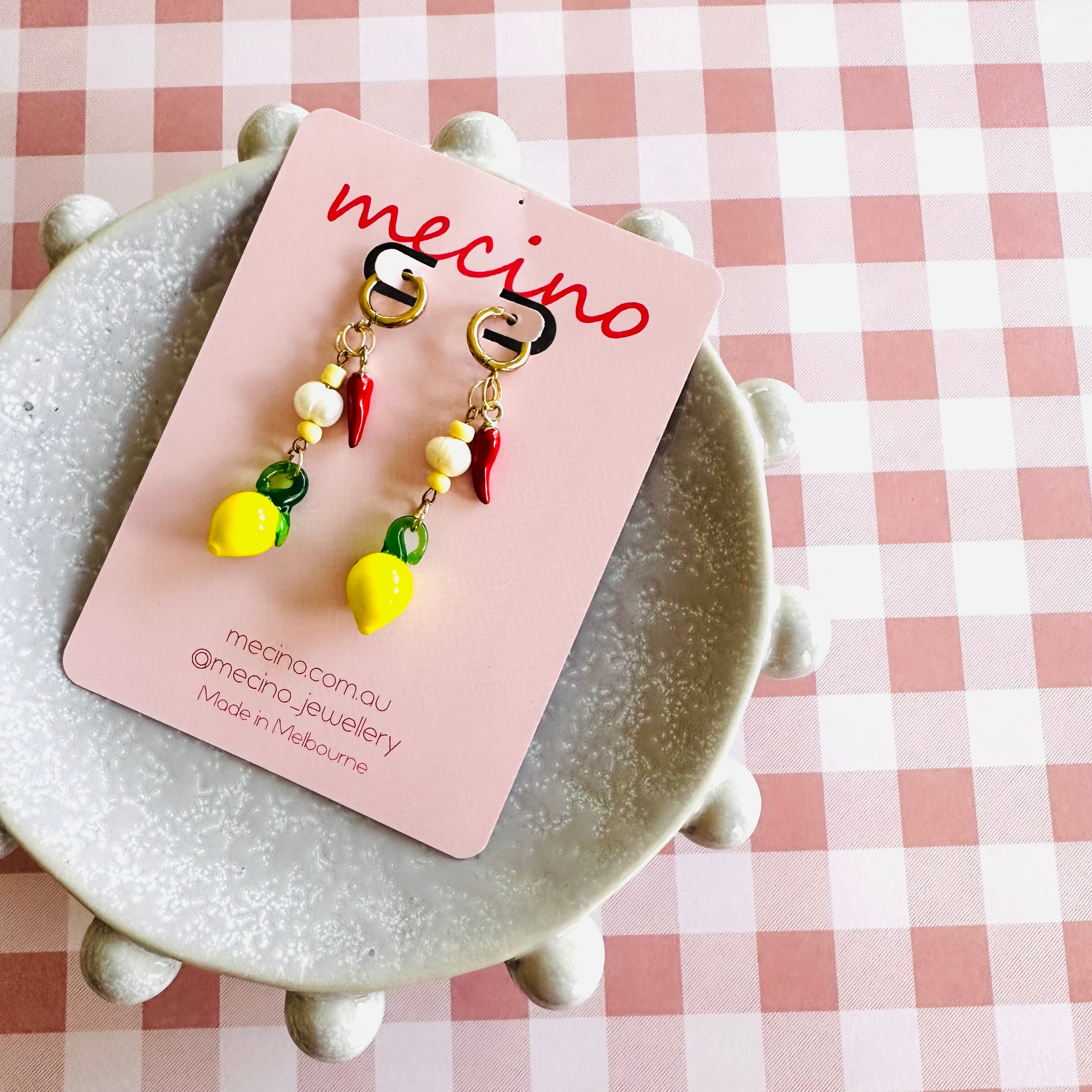 Playful lemon drops with a red chilli charm, freshwater pearls and soft beads. Bright, fun, and full of summer vibes 🍋🌶️✨
