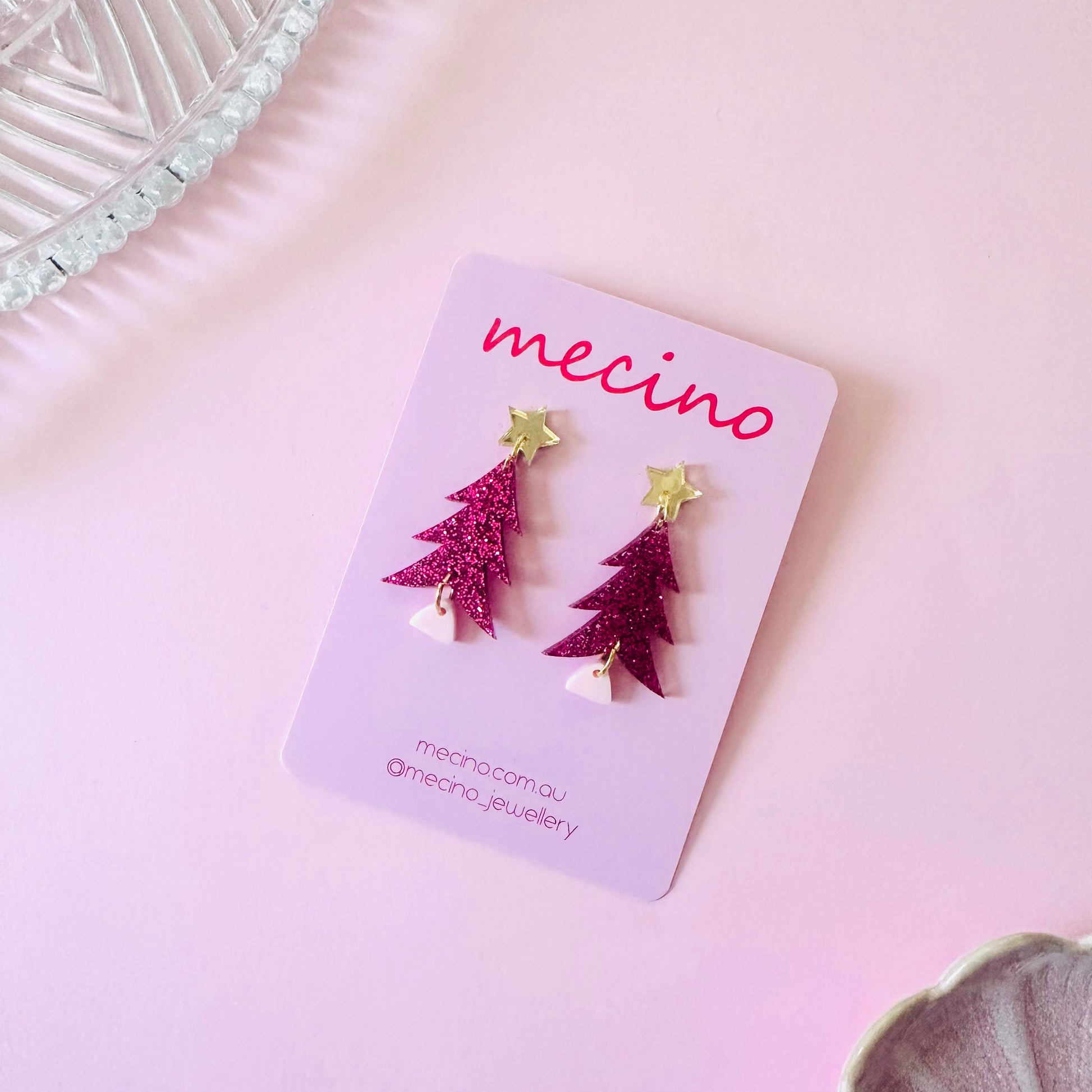 Forest Christmas Tree Drops in glitter pink acrylic.