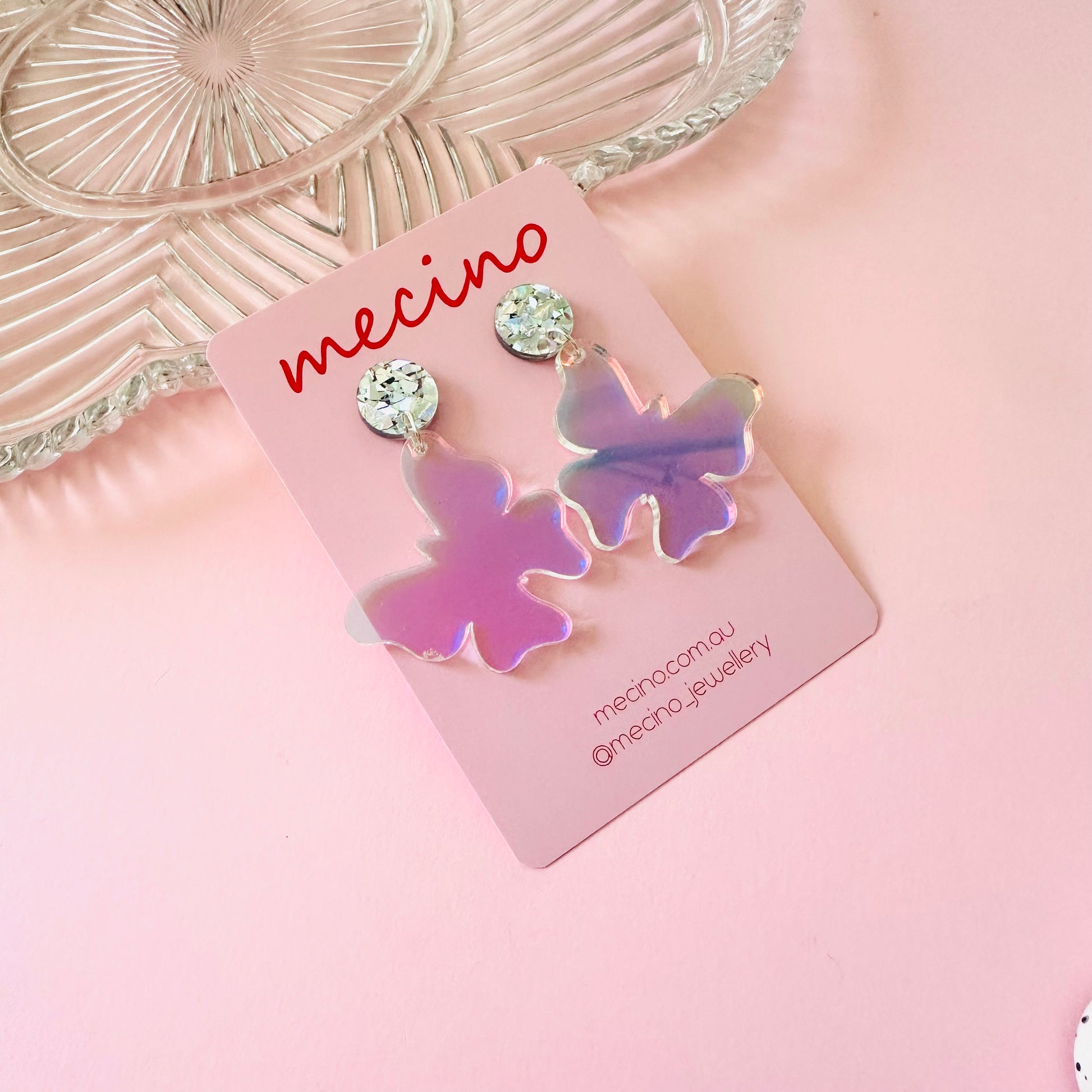 Lightweight, sparkly, and super cute—these butterfly-inspired earrings bring a soft pop of color and shimmer to any look.