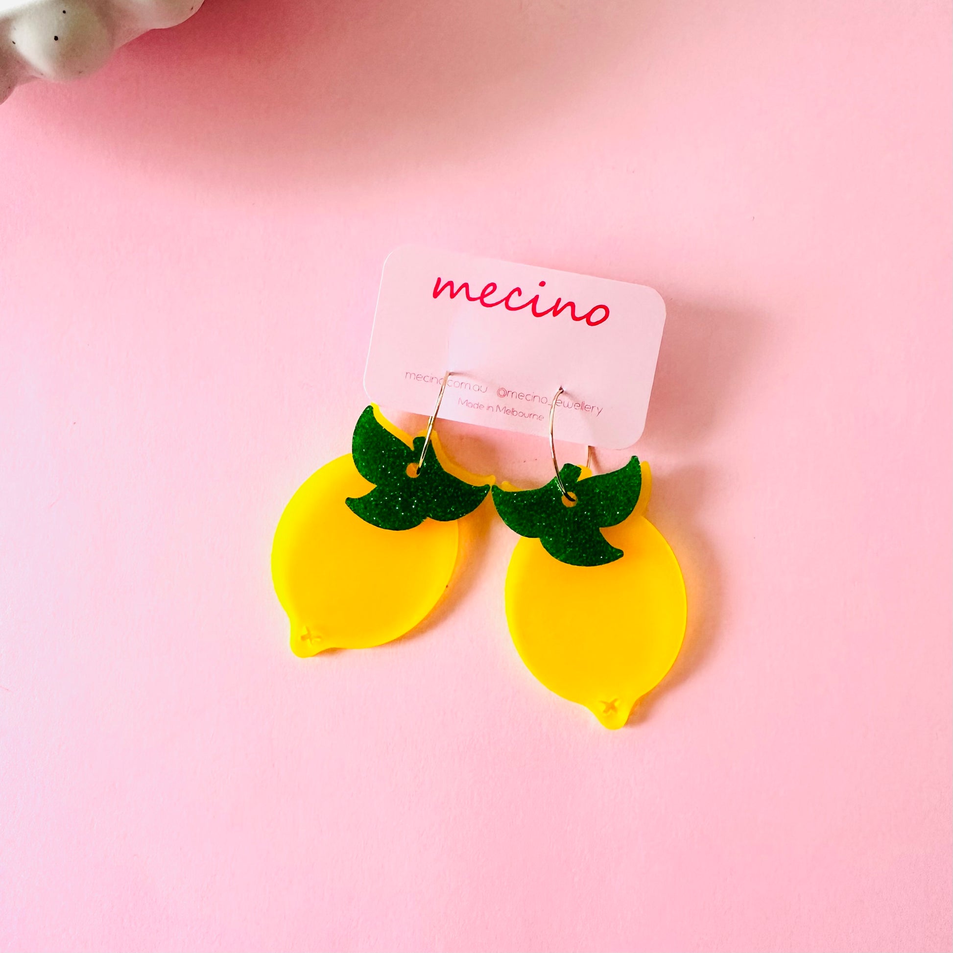 Lemons measure 45mm in length. Hoops measure 2cm.