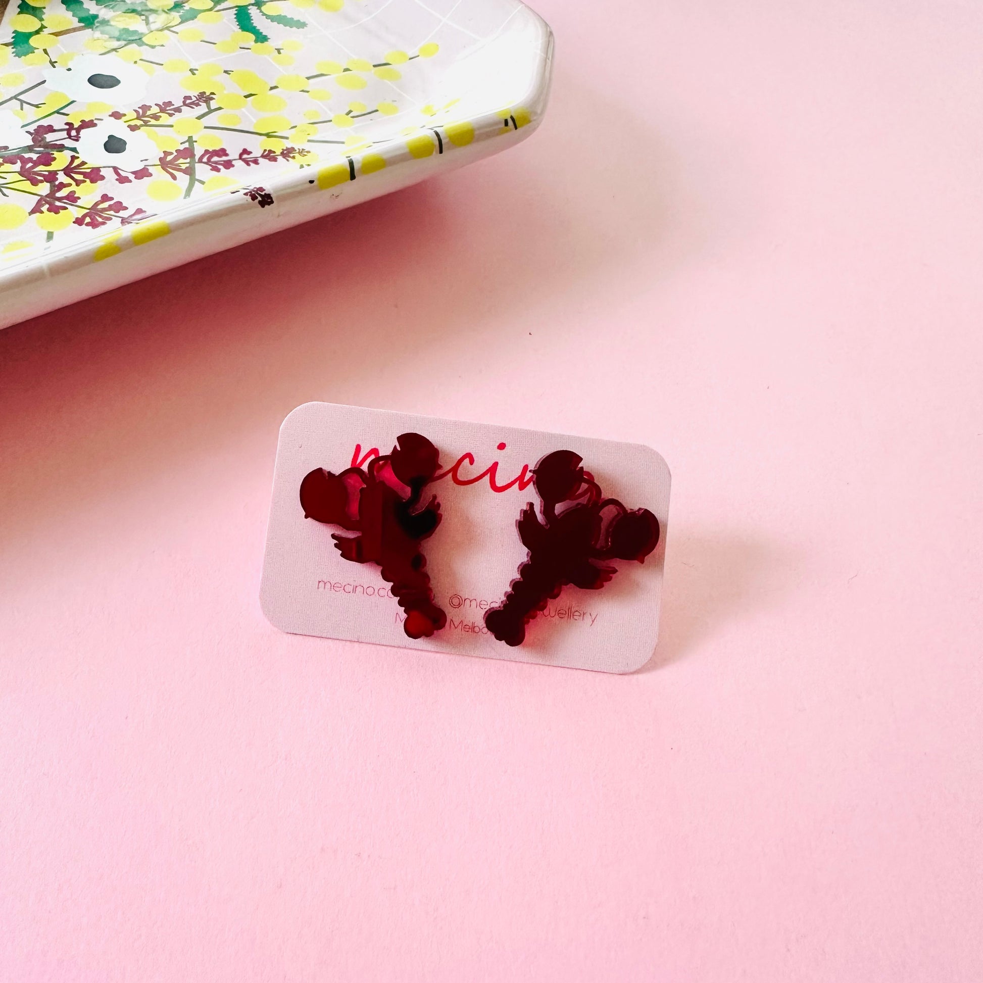Fun mirrored red lobster studs.