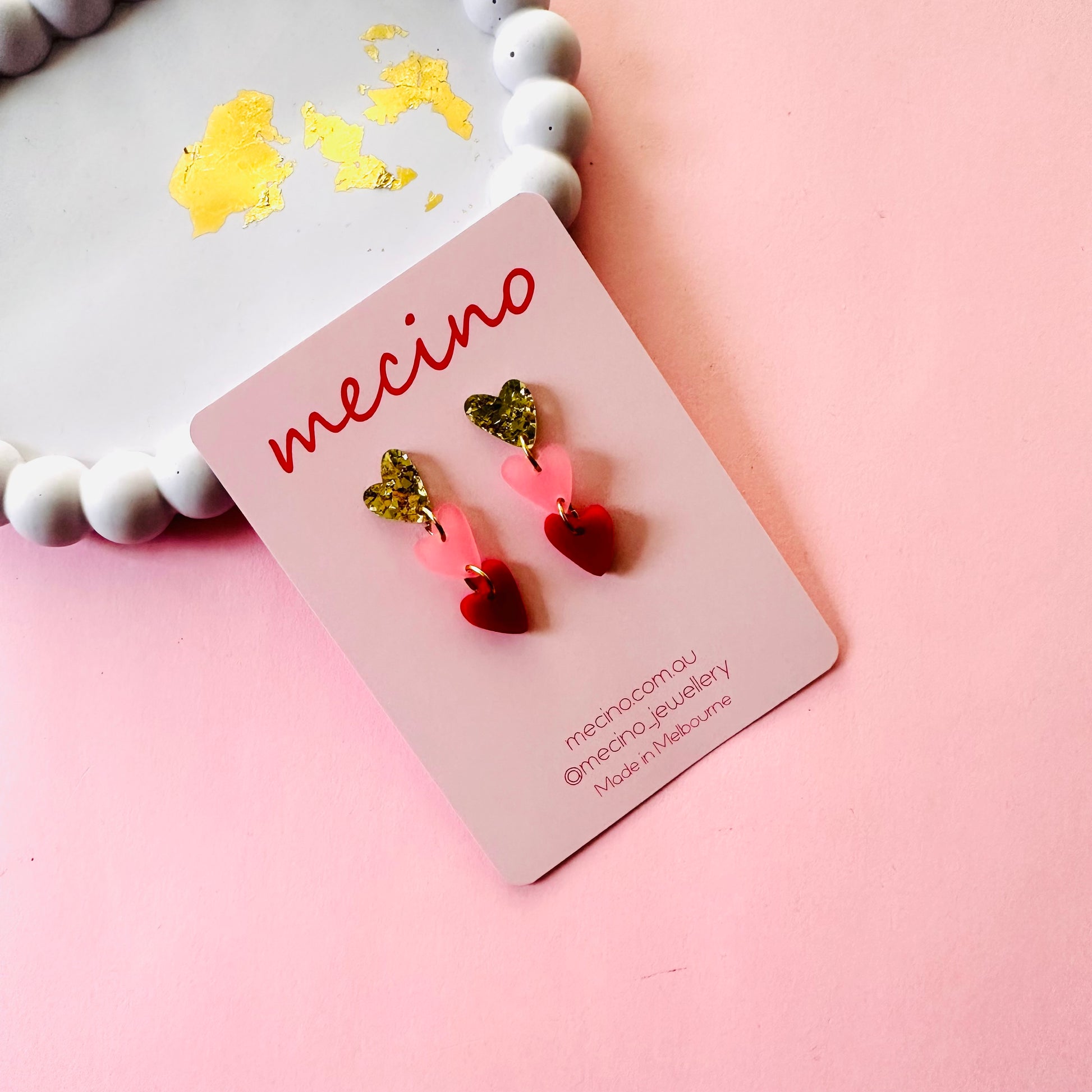 Add a pop of playful charm to your outfit with these triple acrylic heart drop earrings!