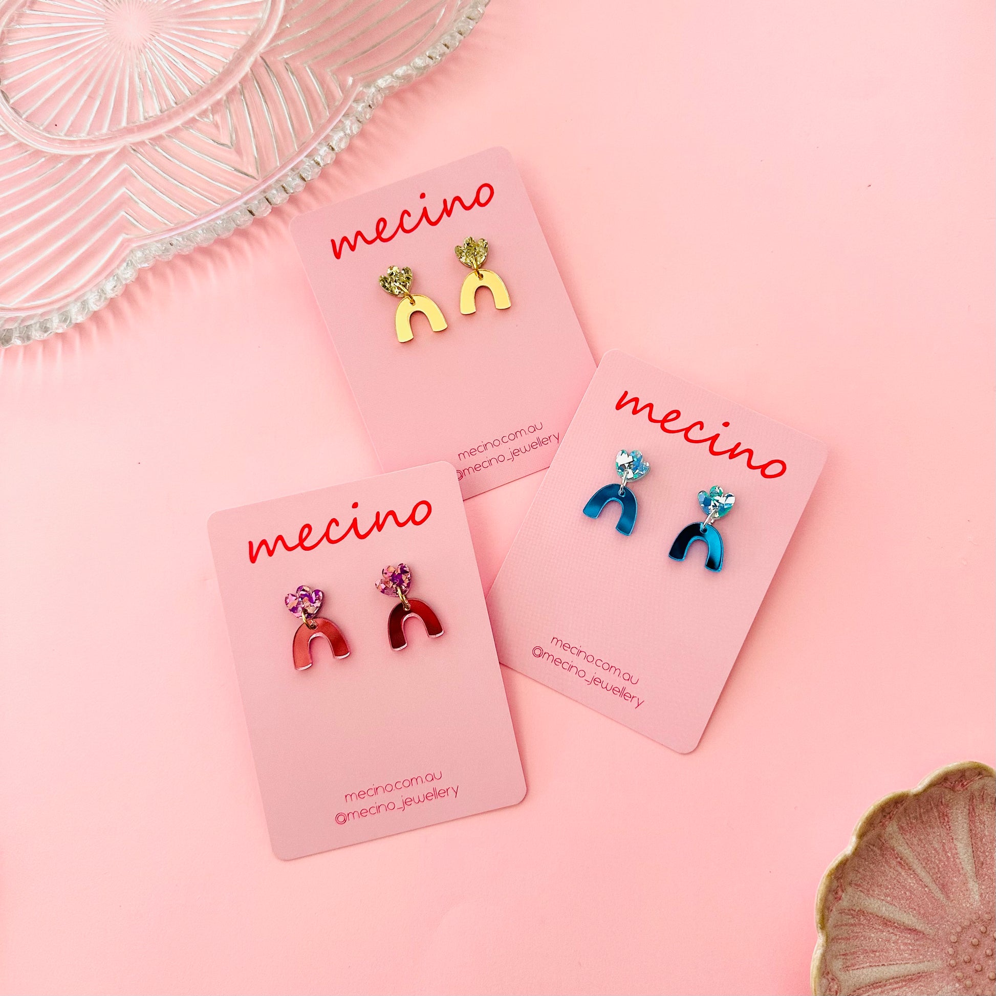 Arch measure 1cm and are available in mirrored pink, mirrored gold and mirrored blue acrylic.