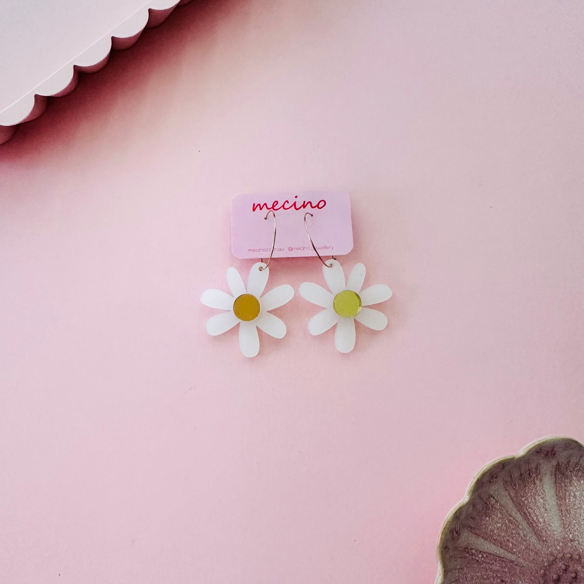 Brighten up your look with these charming handmade acrylic daisy earrings.