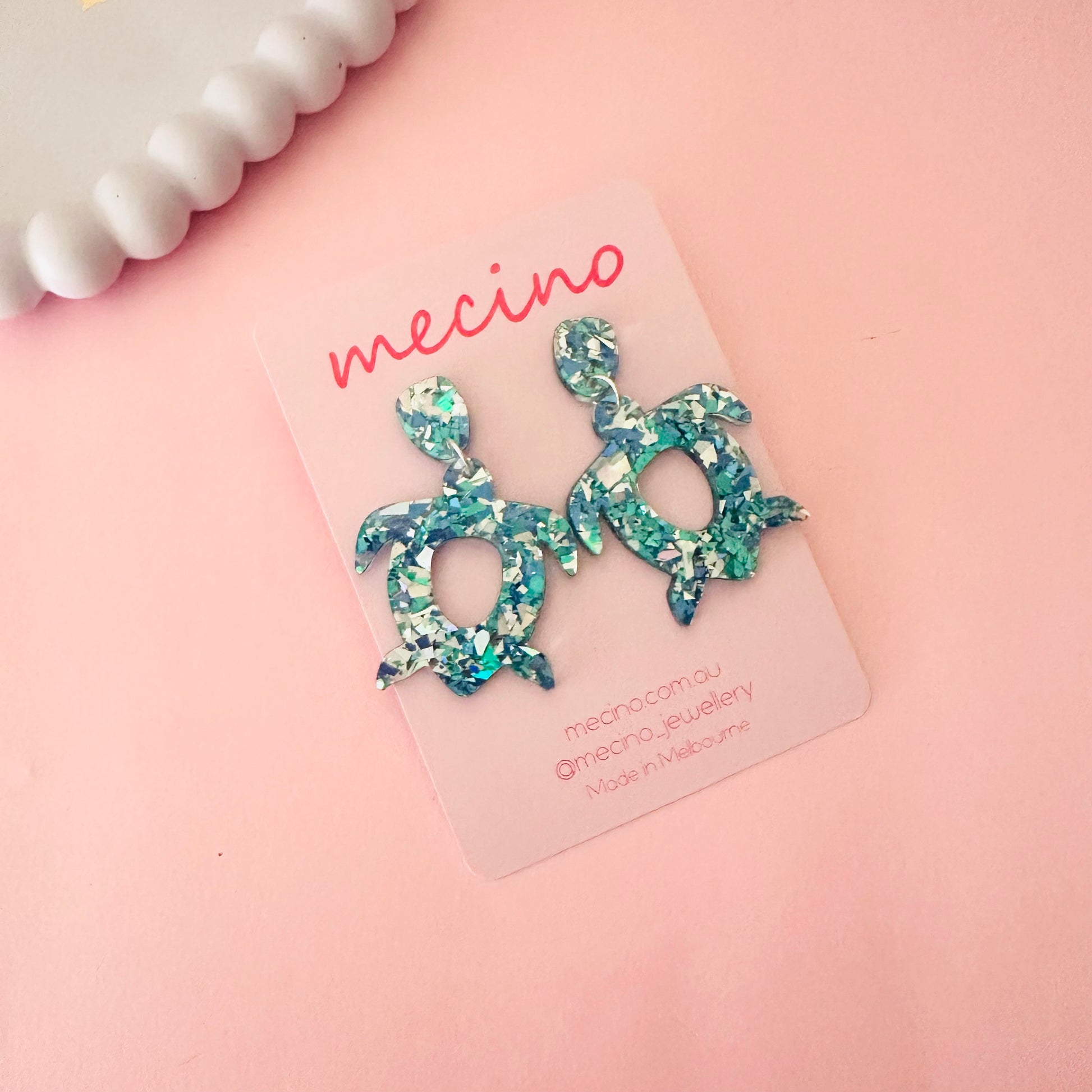 Featuring sparkly sky blue turtles, these statement pieces are perfect for ocean lovers, or anyone who loves quirky, fun jewellery.