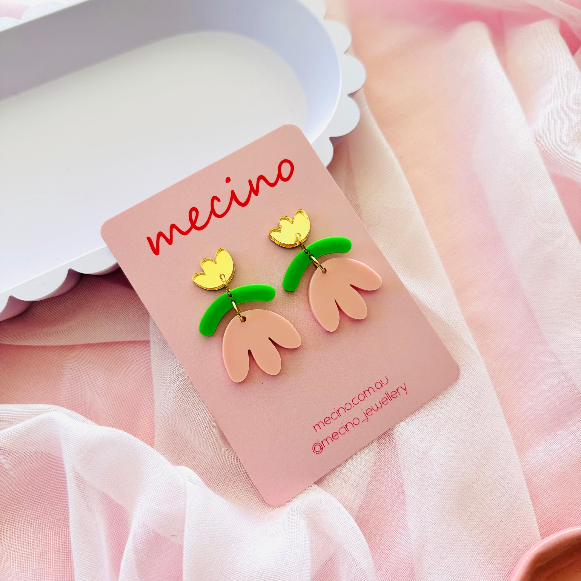 With fun green arches and soft peachy pink petals, they’ve got a playful vibe that works great for everyday wear. Super lightweight and comfy too – you’ll forget you’re even wearing them!