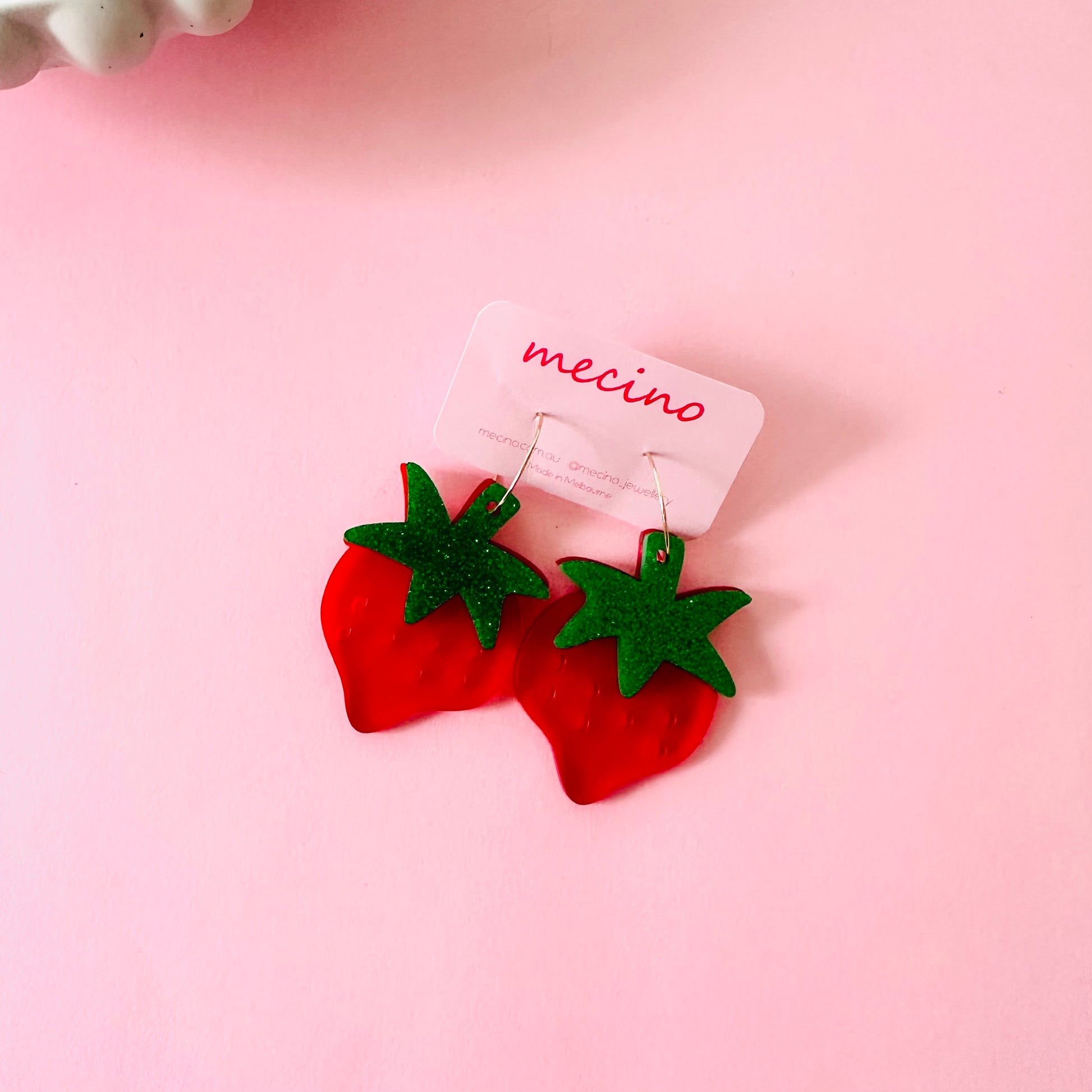 Made from lightweight acrylic, they feature bright red berries with sparkly green tops—sweet, simple, and super easy to wear. Whether you’re heading to brunch, the markets, or just out and about, these playful strawberries add a cheerful touch to any outfit. 🍓