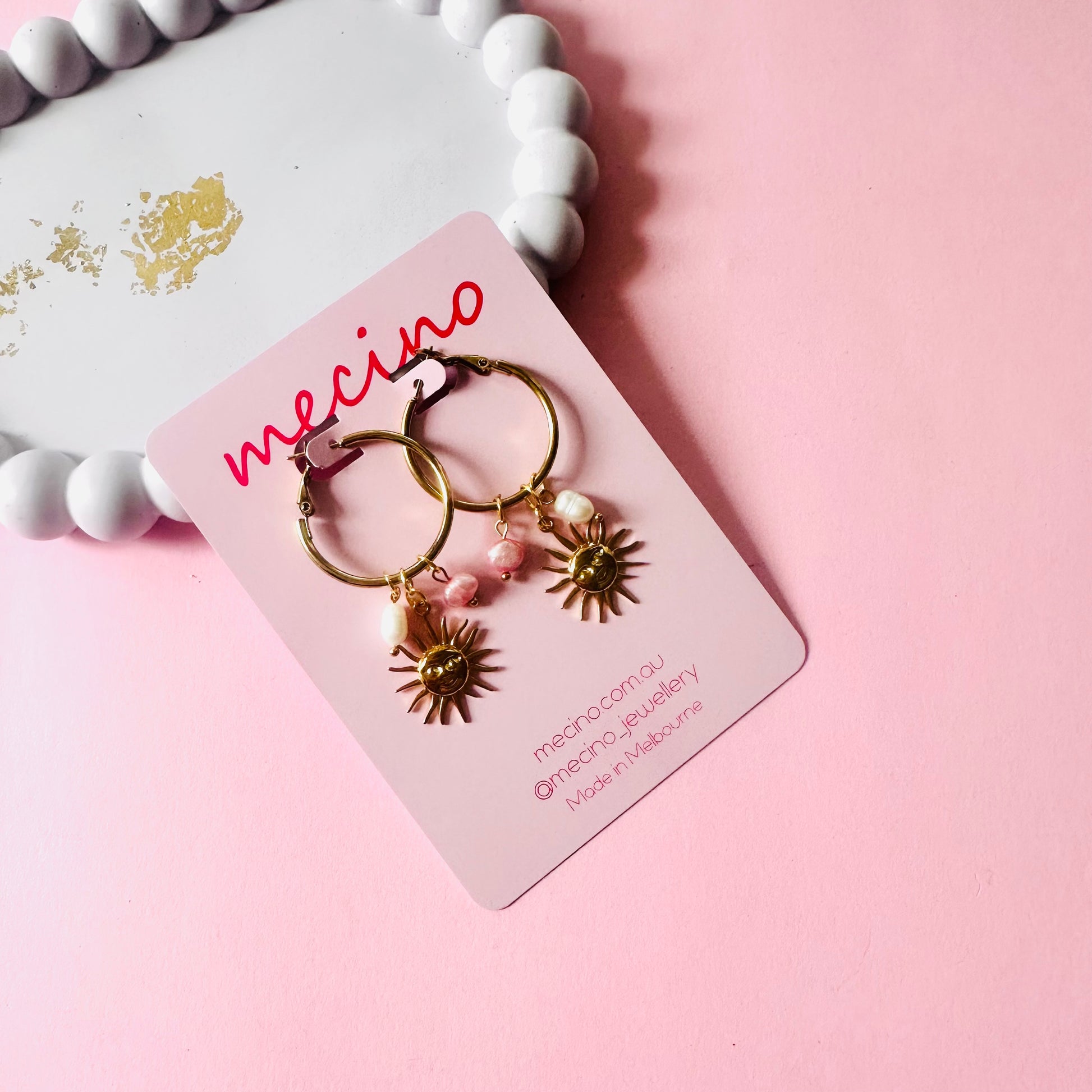 Radiate golden energy with these stunning hoop earrings featuring glowing sun charms and freshwater pearls. The perfect balance of celestial and feminine, these hoops bring warmth and a little magic to any outfit.